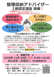 整理収納アドバイザー/2級認定講座 開催!