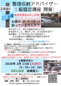 - 特定非営利活動法人・一般社団法人 ハウスキーピング協会の認定講座